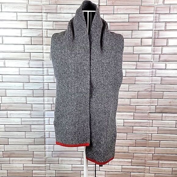 Classic styling in 100% lambs wool ribbed knit scarf from the Gap. Grey with a red trim accent. Great pre-owned condition