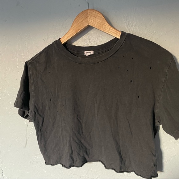 Garage Black Distressed Short Sleeve Crop Top 100% Cotton XS
