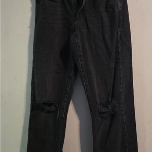 Stylish black jeans with distressed details. Perfect for casual wear. Comfortable fit.