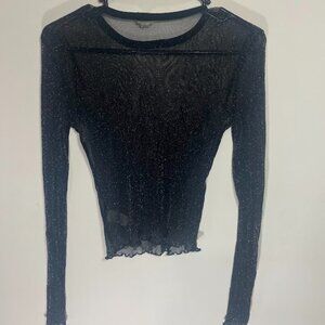 Women's Garage black shimmer sheer long sleeve blouse. Size S. Great condition. Pit to pit: 14.5". Total length: 20". Sleeve length: 21".