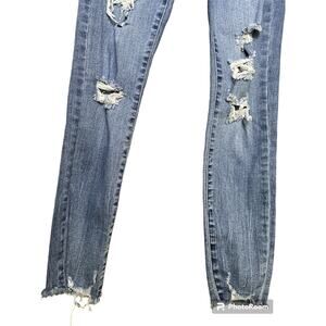 Garage Blue Jean Denim Ultra High Rise High Waisted Distressed Raw Hem Size 24