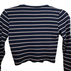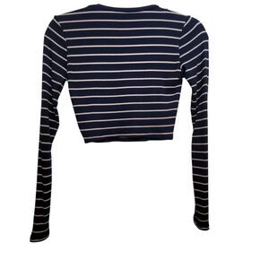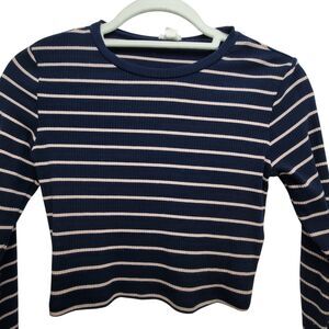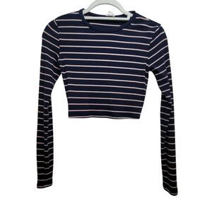 Garage Blue Striped Long Sleeve Crop Top Size P/S