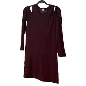 Garage burgundy long-sleeve mini dress with cold shoulder cutouts. Stretchy knit fabric. Excellent pre-owned condition.