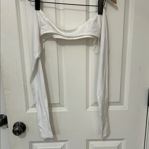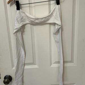 Chic white crop top with long sleeves. Ideal for any outfit.