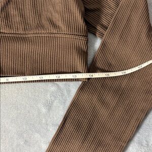 Chic chocolate V neck ribbed crop top with long sleeves. This crop top is so fun! It looks to be NWOT! Fabric: 94% nylon, 6% spandex. Very stretchy. Measurements are approximate: