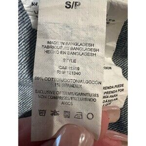 This Garage Classic Fit Denim Faded Wash Crop Jean Jacket in size Small is a stylish and versatile addition to any woman's wardrobe. Made from cotton denim, this short-length jacket features a button closure, long sleeves, and a collared neckline. With a regular fit and classic blue color, it is perfect for layering in the summer, fall, and spring seasons. This basic jacket also includes pockets, making it both practical and fashionable for everyday wear. Easy to care for with machine washable fabric, this jacket is a timeless piece that can be dressed up or down for any occasion. 17 inches pit to pit and 19 inches long. Smoke free home.
