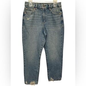 Garage Classic Straight Blue Denim Jeans. Size 28. Light wash. Distressing.
