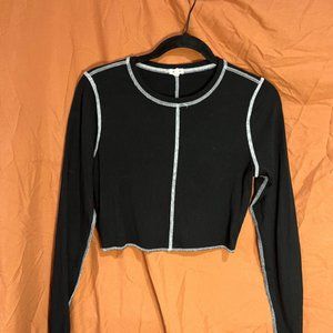 Garage Contrast Seam Ribbed Crop Long Sleeve Visible contrast seam crop top from Garage. Long sleeves, ribbed texture. Size: L Material: 94% rayon, 6% spandex Condition: Worn & Washed Once Retail: $29.95 Measurements: Upon Request