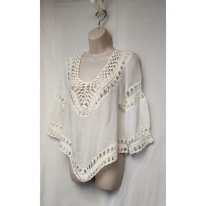 Garage Cover Up Off White Crochet Flowry Top/Blouse Size Large