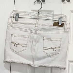 Chic cream denim mini skirt. Perfect for everyday style. A must-have piece.
