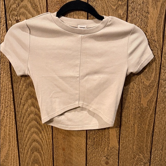 Garage Cream Ribbed Cropped Tee