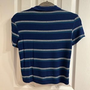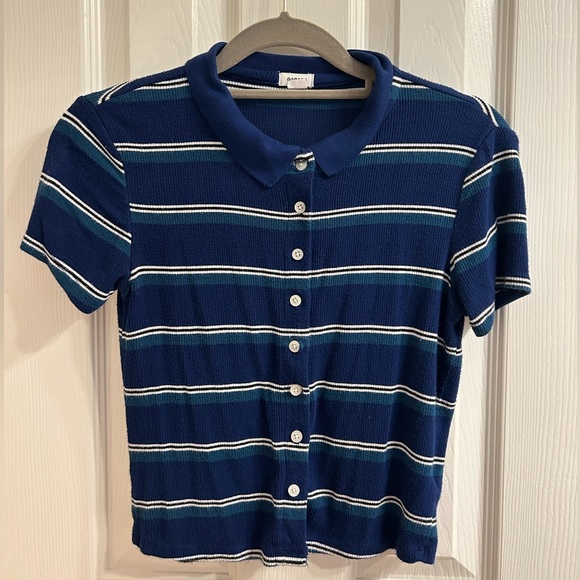 Garage Cropped Button Up stripped tee with collar -pet & smoke free home