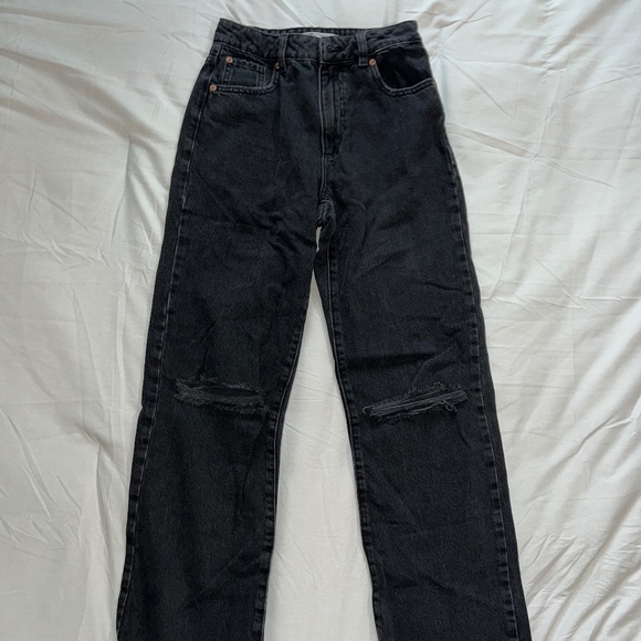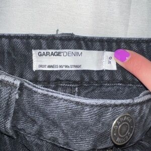 Size 24 / 0 Regular. Garage Denim 90s Straight Jeans. Excellent condition. Unfinished Cuffs. Holes in knees, not stretched or ripped beyond original distressing.