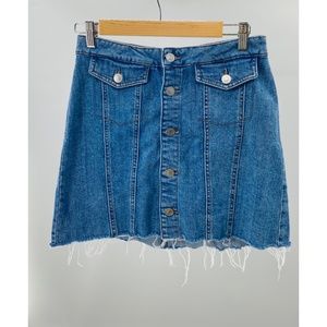 Garage Denim Cut Mini Skirt w/ Front Pockets