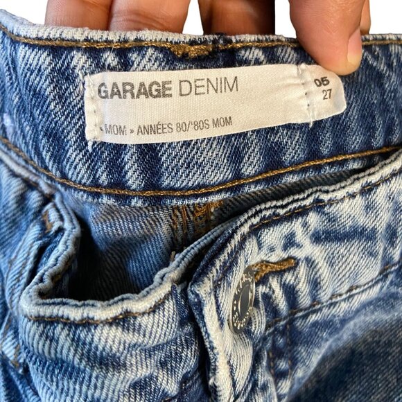 Garage Denim Women's 80's Mom jeans are a high-waisted, regular fit pair of denim pants made of 100% cotton. The jeans feature a 5-pocket design, distressed accents, and an acid wash bleach finish. They have a zip and button closure, and a light fabric wash. The inseam is 26 inches, and the waist size is 30 inches. These jeans are part of the Garage Denim product line and are suitable for winter, summer, fall, and spring. They have a hemmed retro Y2K style and are perfect for festivals, 80s, city, and retro themes.