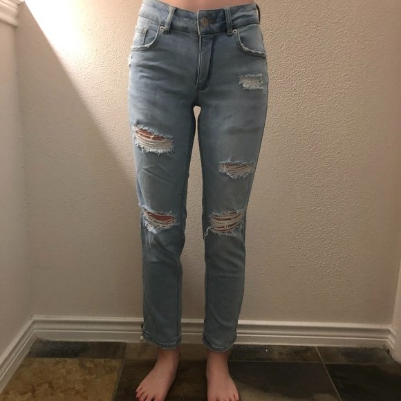Garage Girlfriend Stretch Jeans distressed Sz 00 light wash Juniors Misses, very soft