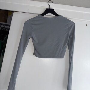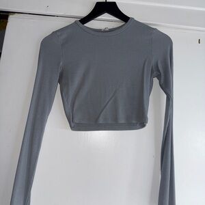 Garage Gray Blue Long Sleeve Fitted Crop Top