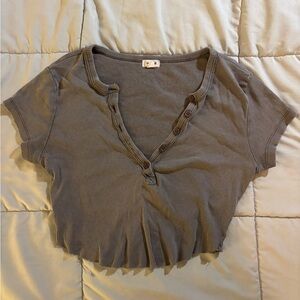 Elevate your casual wardrobe with this stylish gray ribbed crop top. Featuring a button-up design, it's perfect for a relaxed yet chic look.