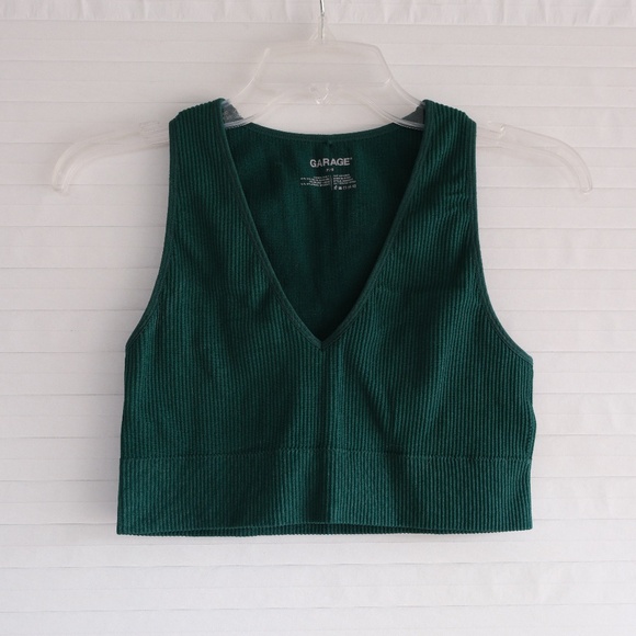 Stylish ribbed crop top. Deep V-neck design. Perfect for casual wear.