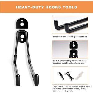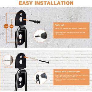 🧿【Universal and Easy to Install】Can be applied to various occasions, such as garages, gardens, shops, basements, and other workplaces, easy to install with instruction, each hanger hook provides 2 types of screws for use on wooden, brick or concrete walls, to meet different installation requirements.provides excellent anchoring for your garage organization.