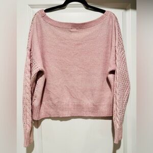 Garage Light Pink Cropped Off Shoulder Cable Knit Sweater