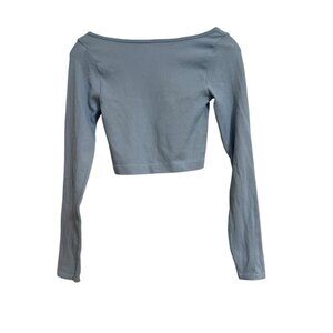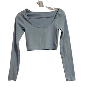 Garage Long Sleeve Baby Blue Cropped Top SZ XS Workout Stretchy Ribbed