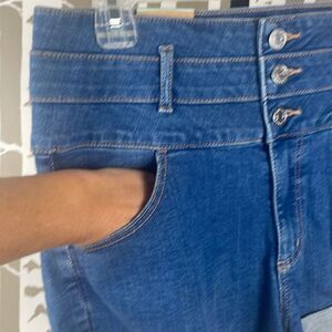 Additional Details: 4 pocket style, 3 exposed button and zip closure, sewn cuffed hems