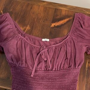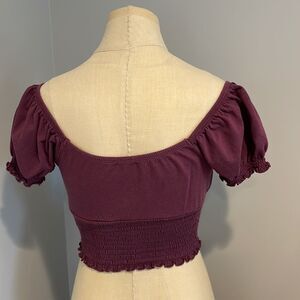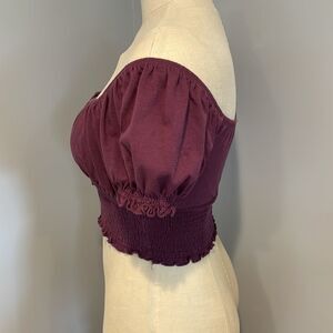 Excellent condition, dark purple off the shoulder crop top by Garage. Size S.