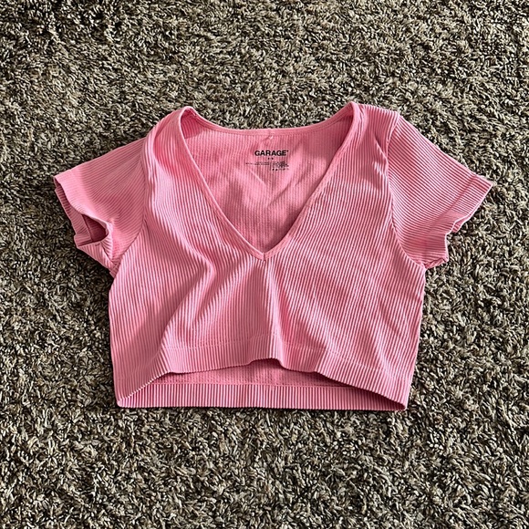 Garage Pink Ribbed Crop Top