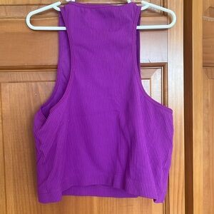 Discover the vibrant charm of the Garage Purple Crop Tank Top, designed with a fitted style that accentuates your silhouette. This sleeveless top features a high neckline, offering a sleek and modern look. Crafted from a solid, structured material, it provides a clean and minimalist aesthetic perfect for any casual outing.
