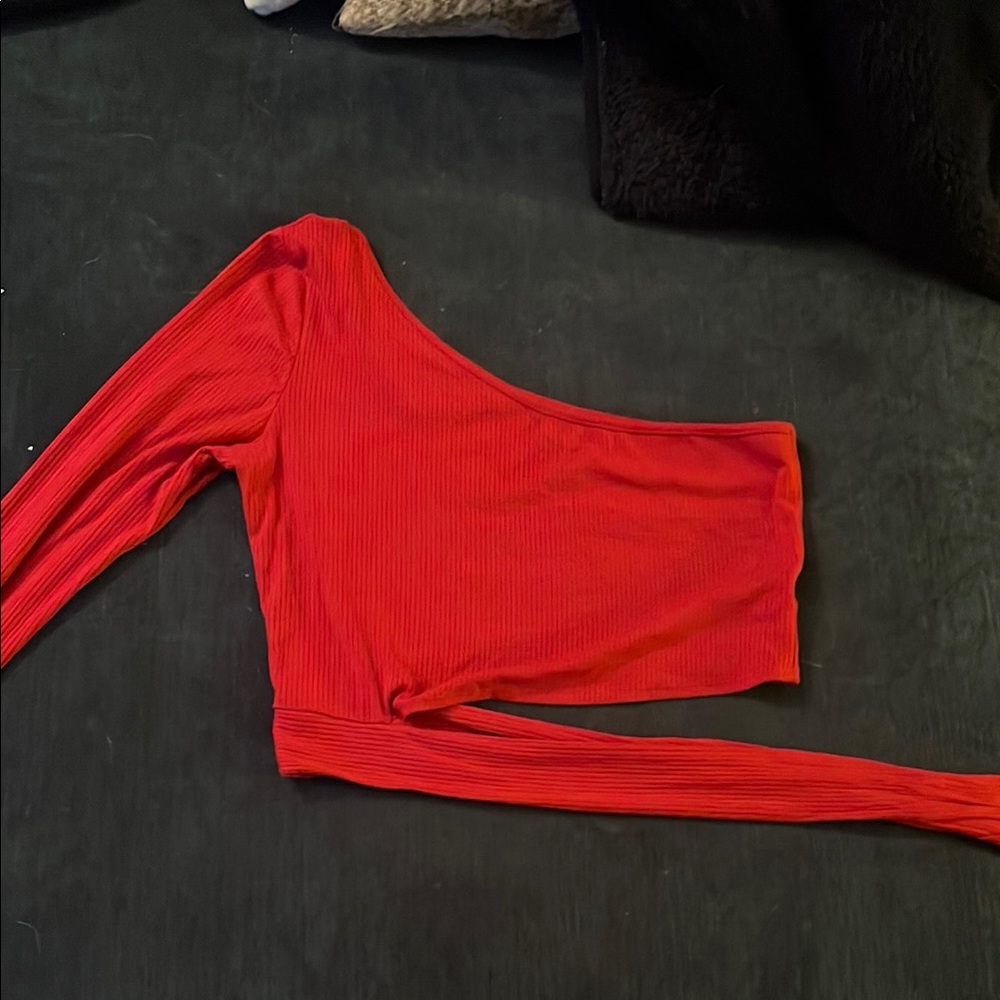 Elevate your style with this chic red one-shoulder ribbed top. Perfect for a night out or a casual day, this top adds a bold touch to any outfit.