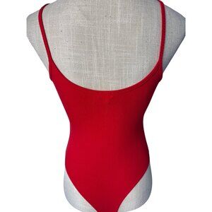 Garage Red Ribbed Bodysuit With Button Front Closure P/S