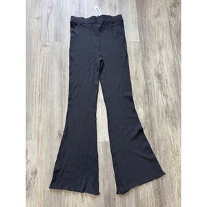 Garage Ribbed Flare Pants Womens Medium Gray Knit High Waist Wide Leg Trousers