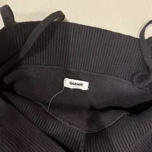 Dark gray ribbed wide-leg pants and a tank set. Stretchy fabric for comfort. Versatile piece for casual or dressed-up looks. Used but in great condition