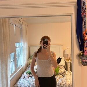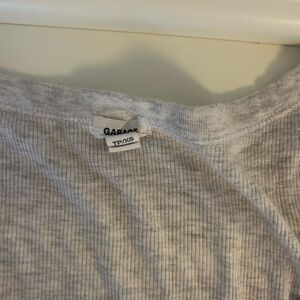 Elevate your wardrobe with this stylish gray ribbed top. Perfect for any occasion, this versatile piece offers comfort and elegance.