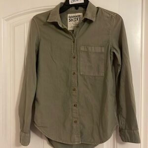 Garage Shirt relaxed fit women extra small, long sleeve button up olive green