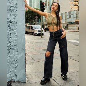 Garage Street Wide Leg Jean - Black Destructed size 00