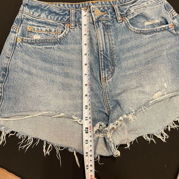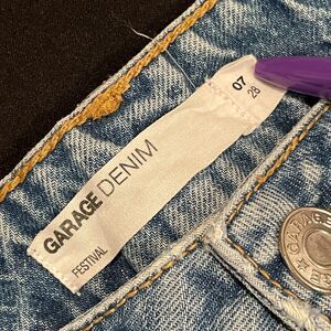 Orig $55. Garage Festival cut-off denim jean shorts in women's size 7. Multicolor LOVE with peace sign screen printed on back pocket. 100% cotton. Model photos for fit only; not actual item. Perfect for summer, spring, beach, vacation, pool, camp, festival, concert, BBQ, party. Hippie core, boho, bohemian aesthetic!