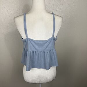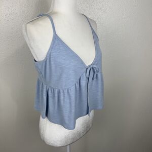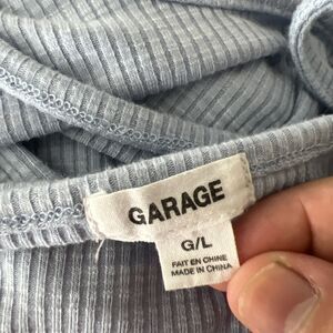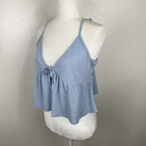 Garage Tank Top Women Large Blue Ribbed Knit Tie Front Sleeveless Cropped