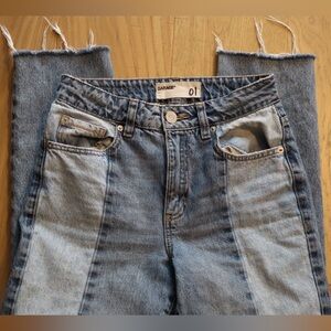 #GarageDenim #MomJeans #TwoToneJeans #HighRise #VintageInspired #StreetStyle #FrayedHem #Colorblock #TrendyDenim #CasualCool