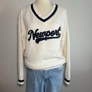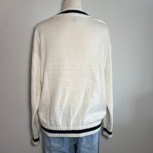 Ribbed neckline, hem at sleeves, and at hem around bottom of sweater