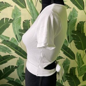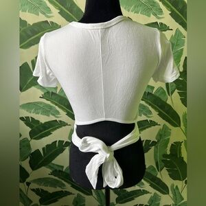 Garage White Ribbed Baby Tee Tie Back Cropped Top Size M