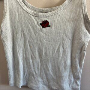 charming Garage White Rose Crop Tank Top, featuring a playful red rose design that adds a pop of color to your outfit. Made from soft, breathable fabric, this tank top is perfect for warm days or layering under your favorite jacket. The cropped cut offers a trendy silhouette that pairs beautifully with high-waisted jeans or shorts, making it a versatile choice for any occasion. Please note that this item is a size small and has some discoloration, so be sure to view the photos carefully to appreciate its unique character. Embrace effortless style and comfort with this delightful piece that’s sure to become a staple in your collection!
