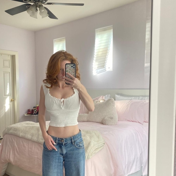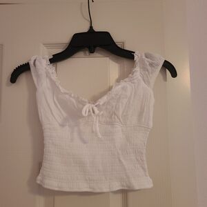 Garage White Ruffled Crop Top