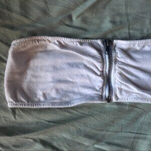 Add a bold touch to your wardrobe with this Garage White Zipper Bandeau — a stylish and versatile piece perfect for layering or wearing solo. Designed with a standout front zipper detail, this medium-sized bandeau combines edgy style with a flattering, body-hugging fit.