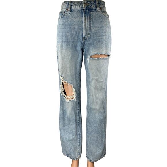 Garage Women's Blue High Rise Distressed Straight Wide Leg Denim Jeans Pants 0