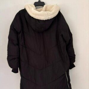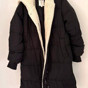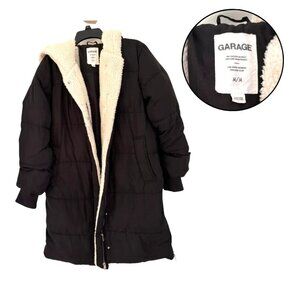 Garage Women’s M Black Sherpa Lined Hooded Puffer Coat Long Winter Jacket Warm