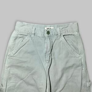 Note: These Garage carpenter pants blend utility style with a relaxed fit, perfect for casual everyday wear. The light sage green color adds a soft, modern touch to a classic work pant design. Please review all photos closely for wear and condition. Color may vary slightly due to lighting.