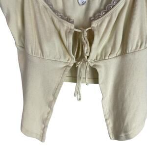 Garage Y2K pale yellow lace trim open tie front milk maid top size large