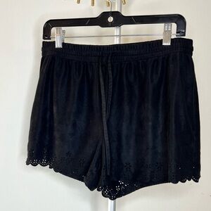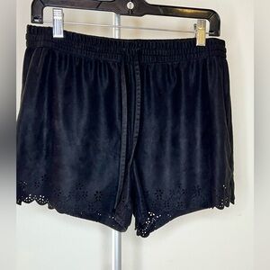 Garage faux suede black eyelet design elastic waist lightweight shorts Large EUC